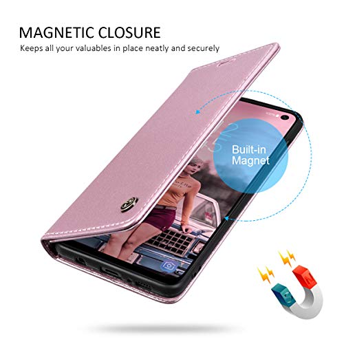 RuiPower per Cover Samsung Galaxy S10e Pelle, Custodia Samsung Galaxy S10e Portafoglio Flip Caso con TPU Antiurto Supporto Stand Magnetica Cover per Samsung S10e - Oro Rosa