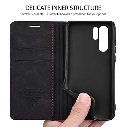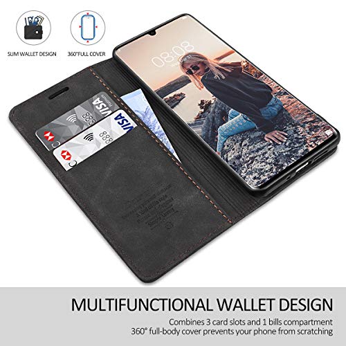 RuiPower Custodia per Huawei P30 Pro in pelle per Huawei P30 Pro New Edition Premium PU Portafoglio [Magnetico] [Porta Carte] [Funzione di supporto] Protezione per Huawei P30 Pro - Nero