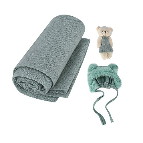 Ruiqas Fotografia Neonato Prop Wrap Cappello Soffice Orso Bambola Set Neonato Foto Puntelli Abiti (Verde Pisello)
