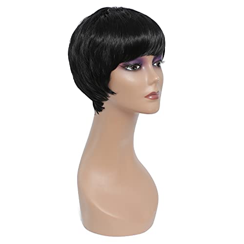 Ruisi Parrucca da donna, capelli corti con frangetta e rete, colore: nero