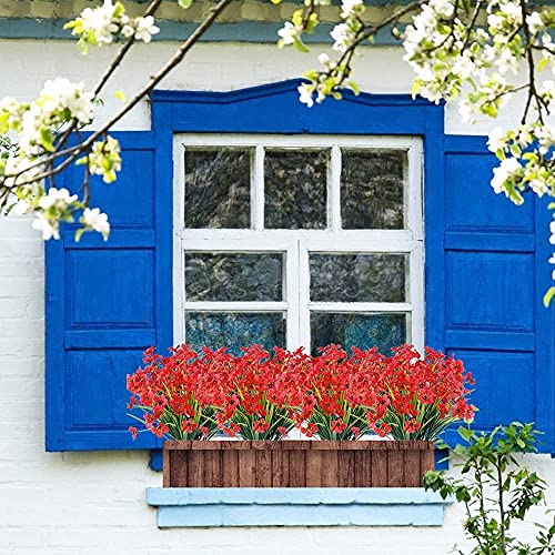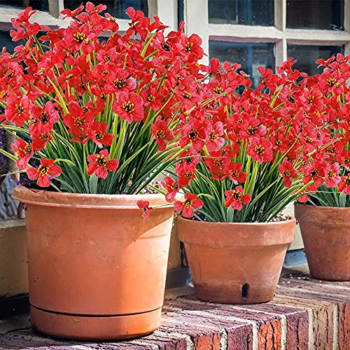 Ruiuzioong - Fiori artificiali di viola per esterni, resistenti ai raggi UV, confezione da 6 pezzi,per piante da appendere, per interni, esterni, finestre, verande, decorazione per la casa (rosso)