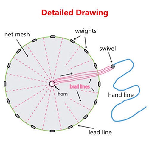 Ruixf Rete Da Pesca In Nylon Con Rete Da Pesca A Mano Con Corda Da 2,4 M / 8 Piedi