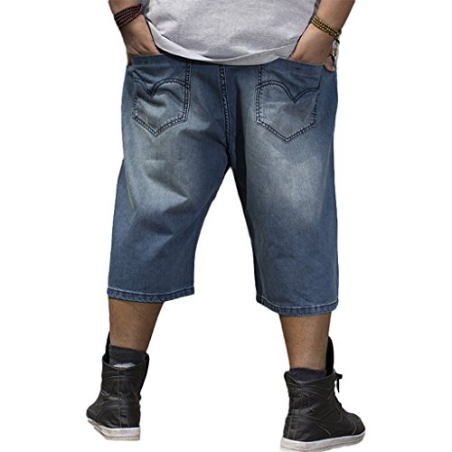 RUIXI Men's Baggy Jeans Loose Shorts Pants Cropped Denim Trousers Light Blue