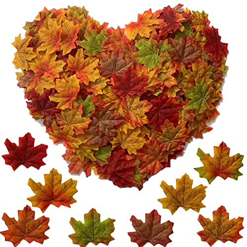 RUIXUE Circa 400 foglie artificiali di acero con colori autunnali,8 Colori Misti Foglie Autunnali Finte Artificiali per Decorazione per Matrimoni,Feste artistiche,Giorno del ringraziamento, Fai da Te