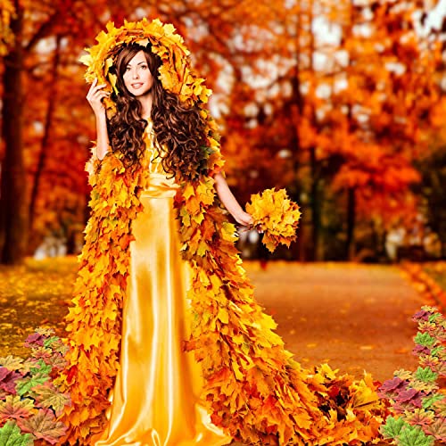 [[Vari Stili] Il set contiene 400 foglie autunnali artificiali, 8 diversi colori misti autunnali e 50 foglie per ogni colore, simili alle foglie d'acero autunnali. È facile integrarsi con l'ambiente naturale esterno ed è più facile creare un'atmosfera autunno.