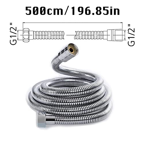 [Facile da pulire]:Tubo Doccia Flessibile 5 metri la finitura argento liscia previene la corrosione, lo sporco e l'accumulo di muffe. Lo strato interno è atossico, inodore, resistente alle alte temperature, antinvecchiamento e non alleva batteri. Tubi puliti e igienici si prendono cura della salute del bagno di casa.