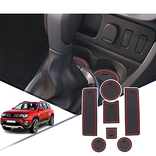 RUIYA Compatiblile con Renault Duster Dacia 2012-2017 Tappetini Antiscivolo per Consolle Centrale, Tappetino in Gomma per Braccioli Porta Portabicchieri, Tappetino Antiscivolo per Auto (Rosso)