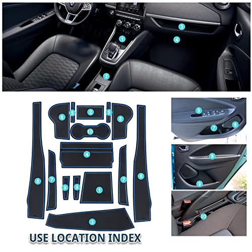 Ruiya per R enault Zoe 2020-2022 2023 Antiscivolo Interno Tappetini, Tappetini in Gomma per Auto Tappetino Bracciolo Protezione Scanalatura Porta Interni Tappetini Gomma Zoe 2023 Accessori
