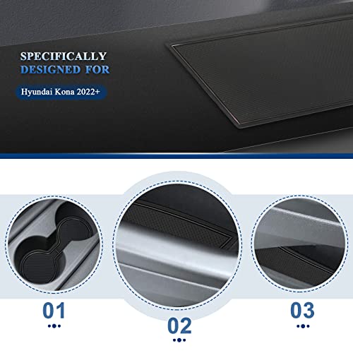 Contenuto della confezione: un set compatibile con Hyundai Kona 2022 2023. I cuscinetti in gomma sono perfetti per la vostra auto, accessori interni perfetti.