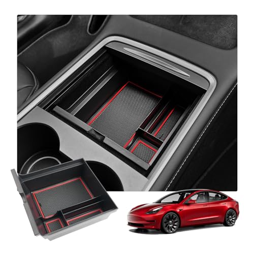 RUIYA Tesla Model 3 2021-2023 Console Centrale Scatola di Immagazzinaggio Vano Portaoggetti Console Storage Box Organizer per Auto Accessori 2023 Update (Rosso)