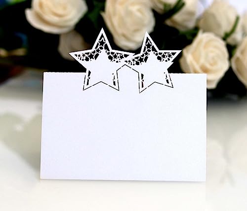 RUIYWEN 50 Pezzi Biglietti da Tavolo Cartellini Segnaposto per Gli Ospiti di Nozze Segnatavolo Carta con Nome per Decorazione del Banchetto della Festa Nuziale (12x9cm, Stelle Bianco)