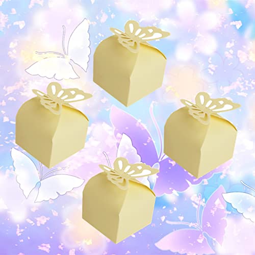 RUIYWEN 50 Scatole per Matrimonio con Farfalle Scatole per Caramelle per Conservare Piccoli Regali, per San Valentino, Ospiti di Nozze, Decorazioni da Tavola (Giallo Crema, 6x6x6cm)