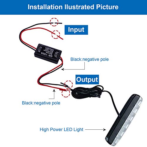 Facile da usare: collegamento filo nero per polo negativo e filo rosso per polo positivo (notato che ha 2 lati, il collegamento "In" deve essere con l'alimentazione e "out" deve essere collegato alle lampadine).