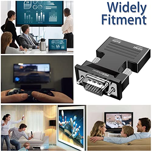[1080P HD]: Supporta la trasmissione del segnale video ad alta definizione 1080P, qualità dell'immagine fluida senza perdita di frame. L'adattatore da a VGA supporta la risoluzione 720P/1080i/1080P, la risoluzione massima supportata dal convertitore è 1080P, si prega di non utilizzarlo per dispositivi superiori a 1080P.