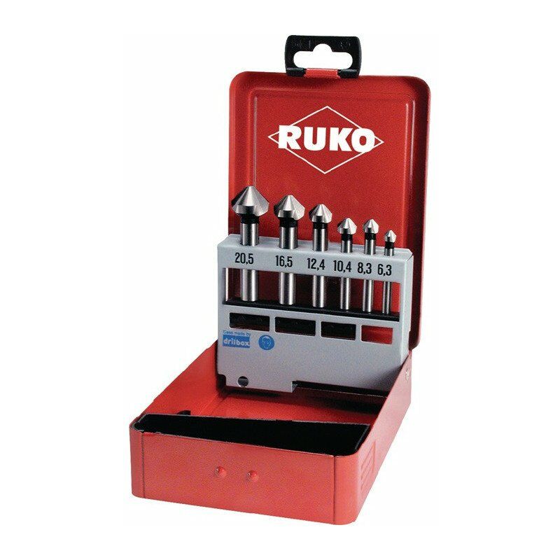 DIN 335 C · 3 Taglio · Angolo di incasso di 90° · ciascuno 1 inferiore 6,3-8,3-10,4-12,4-16,5-20,5 mm · in cassetta metallica Altre caratteristiche tecniche: · Contenuto: 6 parti · Imballaggio: cassetta metallica · Ø: 6,3 / 8,3 / 10,4 / 12,4 / 16,5 / 20,5 mm