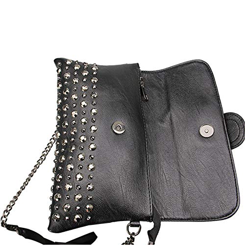 Rullar Donna Punk Rivetto Borsa a Tracolla Borsa a Spalla Mano Multiuso Cuoio PU Borse Tote Borsetta Pochette e Clutch Nero