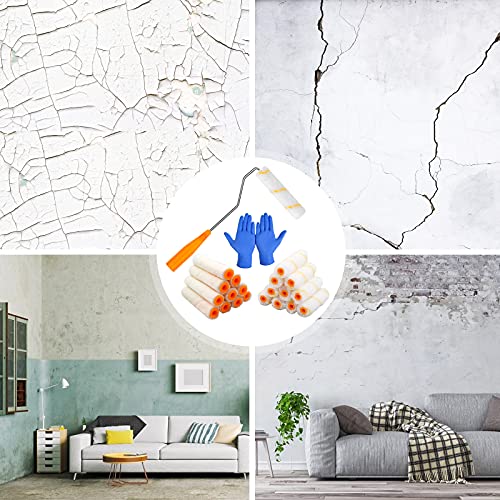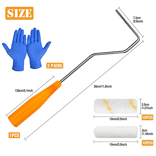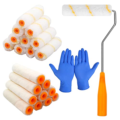 【 Set di rulli per pittura 】 Questo set di rulli contiene 10 pezzi di nucleo in fibra di poliestere da 10 pezzi e 10 pezzi di nucleo del rullo da 4 pollici in puro cotone bianco, un telaio in acciaio inox da 31 cm e 4 guanti in plastica riutilizzabili.