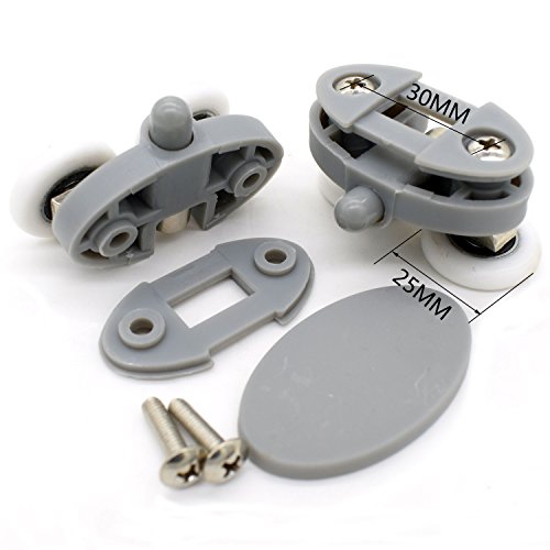 Set di 4 rulli doppi per porta della doccia con guide e ruote da, distanza tra fori: 30 mm (25MM)