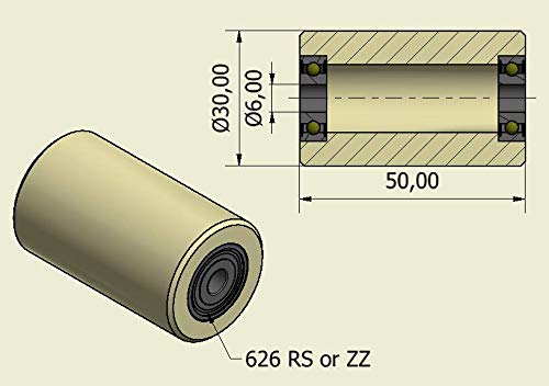 4 rulli in nylon 30 mm diametro 50 mm larghezza 6 mm cuscinetto precisamente lavorati nell'UE (30-50-6)