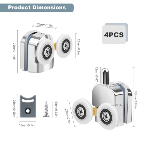 4 Set Rulli Per Porta Doccia,23 mm Rotelle Box Doccia,Box Doccia Ricambi,Ruote Della Doccia per Vetro 4-6 mm,per Porte Della Doccia Scorrevoli in Vetro(2 superiori +2 inferiori Double Wheel)