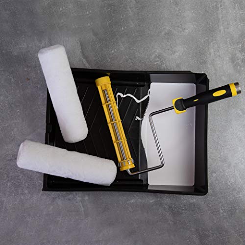 Vassoio profondo: abbiamo incluso un vassoio di vernice profonda da 22,9 cm nel nostro vassoio di vernice e nel set di strumenti a rullo che contiene una grande quantità di vernice in modo da non doverlo riempire costantemente. Dopo tutto il lavoro è fatto, il vassoio e i telai del rullo sono facili da lavare e conservare per la prossima volta.