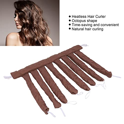 Rullo per Capelli Senza Calore, Nastro Arricciacapelli Senza Calore, 2 Pezzi a Forma di Polpo Fascia per Capelli con Bacchetta per Arricciare i Capelli per Capelli Lunghi Mantiene la Forma(Marrone)
