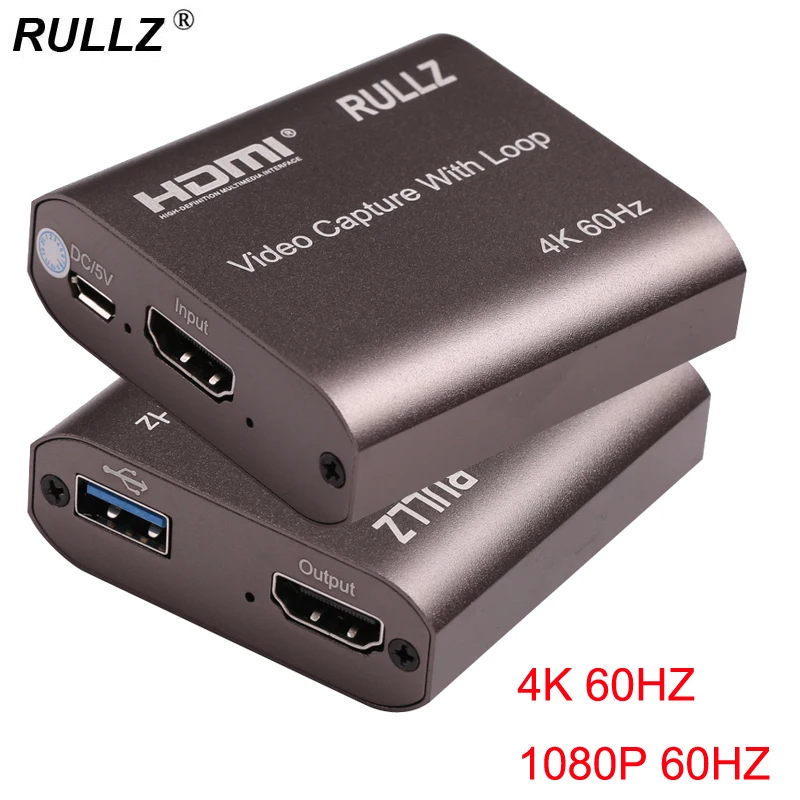 Rullz 4K 60Hz HDMI Video Capture Card TV Loop 1080P Game Recording Plate Live Streaming Box USB 2.0 3.0 Grabber for PS4 Camera