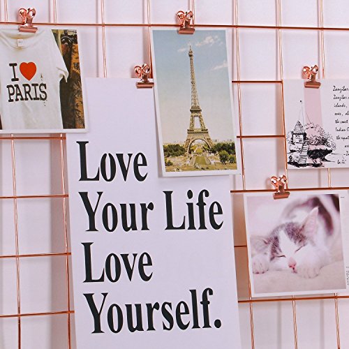 Rumcent, pannello in metallo con griglia oro rosa, decorazione da parete per appendere foto e opere d'arte, confezione da 1 pezzo, dimensioni: 45 x 95 cm Rose Gold Grid 17.7" X 37.4"