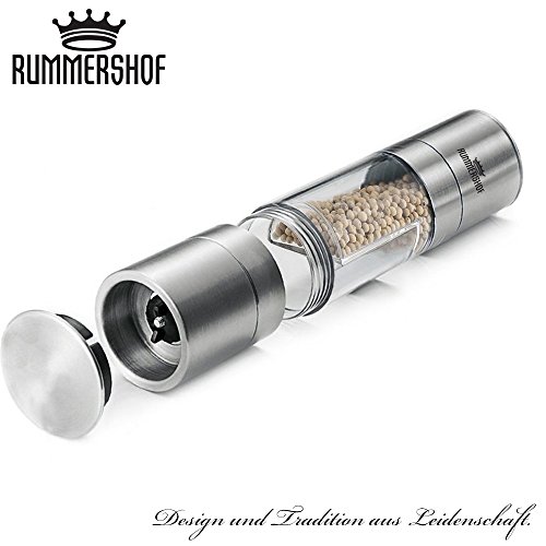 Design elegante e facile da usare: il macinasale e macinapepe Rummershof è composto da un corpo in acrilico di alta qualità con due camere e estremità e tappi in acciaio inox spazzolato, che sottolineano la classe e lo stile della vostra cucina. Sul tavolo il macinino è un elegante e accattivante. Un regalo di design per cuochi appassionati, gourmets.