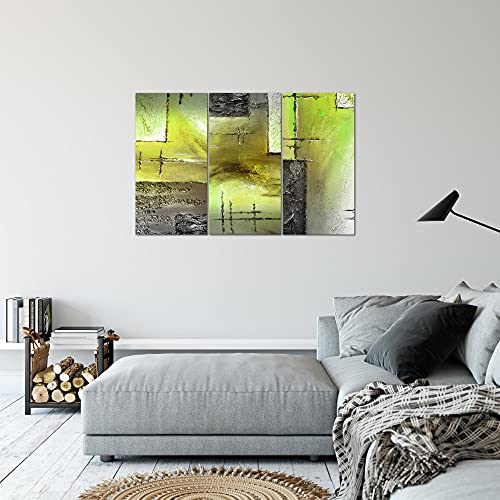 Runa Art Astratto Quadri Soggiorno Grande Verde Bianca 120 x 80 cm 3 Pezzi Decorazione Murale 100931c