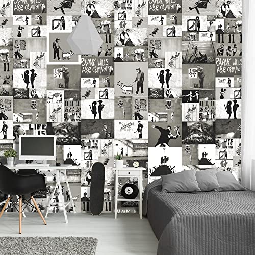 Runa Art Carta da parati fotografica Banksy collage Moderno Vello Soggiorno Camera Da Letto Sala - Made in Germany - Bianco e nero 9084010c