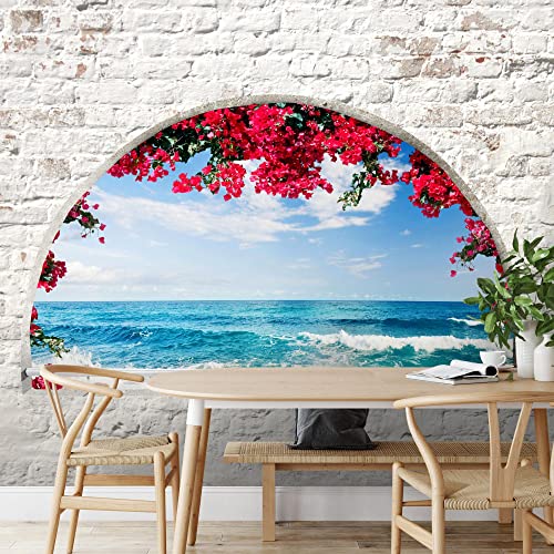 Runa Art Carta da parati fotografica 396 x 280 cm beach finestra e il mare | Vello Decorazione Murale Soggiorno Camera Da Letto | Manifattura tedesca | bianco blu 9074012b