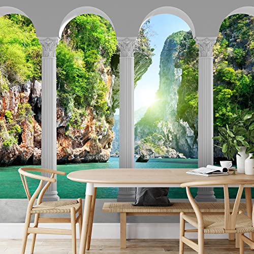 Runa Art Carta da parati fotografica Colonna Natura Mare 352 x 250 cm Vello Sfondo Murale XXL Moderne Decorazione Soggiorno Camera De Letto Sala Ufficio blu verde 9033011a