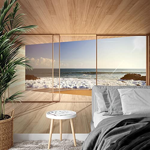 Runa Art Carta da parati fotografica Finestra sul mare Moderno Vello Soggiorno Camera Da Letto Sala - Made in Germany - blu marrone 9051010a