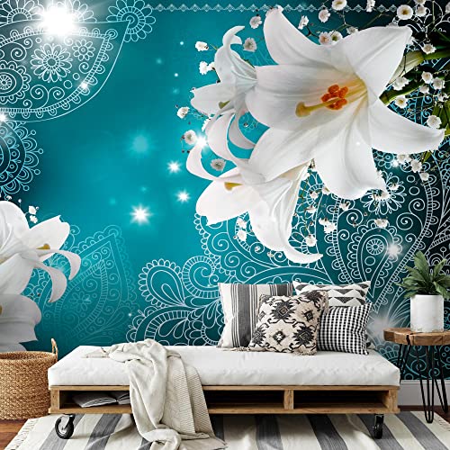 Runa Art Carta da parati fotografica fiori di giglio ornamento Moderno Vello Soggiorno Camera Da Letto Sala - Made in Germany - turchese 9195010a