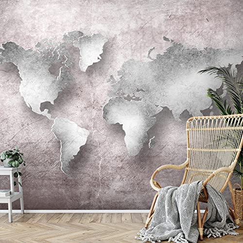 Runa Art Carta da parati fotografica 396 x 280 cm Mappa mondo concreto | Vello Decorazione Murale Soggiorno Camera Da Letto | Manifattura tedesca | rosa grigio 9491012b