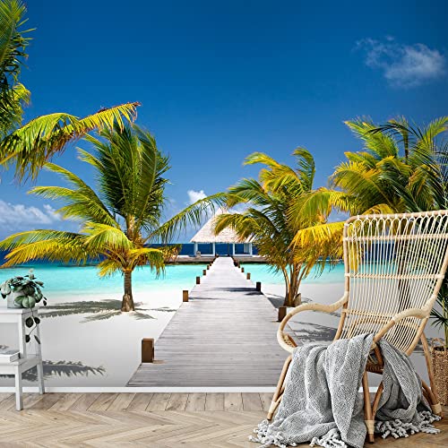 Runa Art Carta da parati fotografica Palm beach mare Moderno Vello Soggiorno Camera Da Letto Sala - Made in Germany - Blu Verde Bianco 9035010b