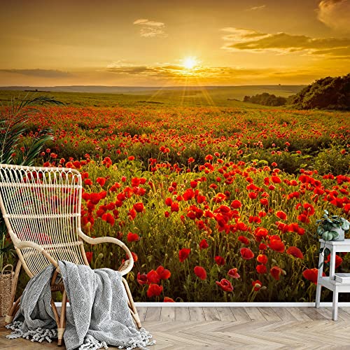 Runa Art Carta da parati fotografica 396 x 280 cm Prato fiorito Papaveri - Vello Decorazione Murale Soggiorno Camera Da Letto - Manifattura tedesca - Tramonto 9592012a