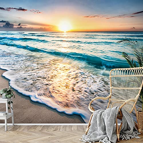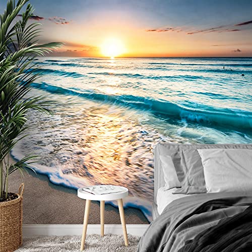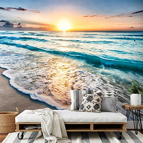 Runa Art Carta da parati fotografica 396 x 280 cm Tramonto della spiaggia del mare | Vello Decorazione Murale Soggiorno Camera Da Letto | Manifattura tedesca | Orage Blu 9467012a