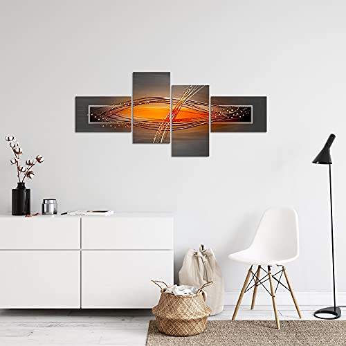 Runa Art Murale Soggiorno Astratto Grigio Arancia Nero 4 Pezzi - Made in Germany - 103345a