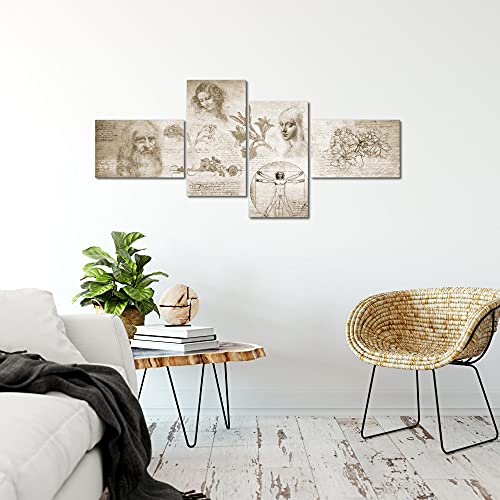 Runa Art Murale Soggiorno Leonardo Da Vinci Biege 4 Pezzi - Made in Germany - 700445a