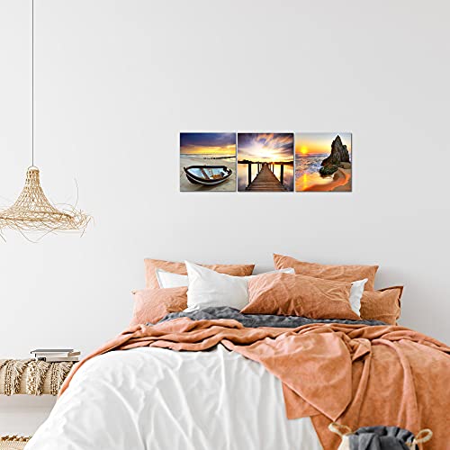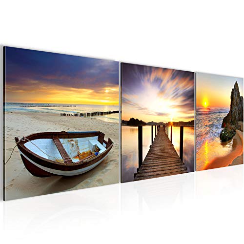 Runa Art Murale Tramonto Spiaggia 3 Pezzi Quadri Tela Non Tessuta Decorazione Soggiorno 90 x 30 cm Natura Paesaggio Arancia 605934a