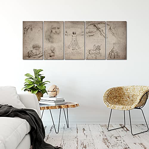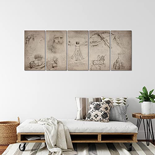 Runa Art Murali XXL Leonardo Da Vinci 200 x 80 cm Marrone 5 Pezzi - Made in Germany - 008955a