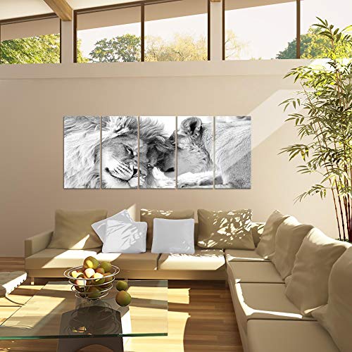 Runa Art Murali XXL Leoni Amore 200 x 80 cm Bianco E Nero 5 Pezzi - Made in Germany - 002155c