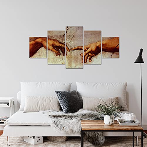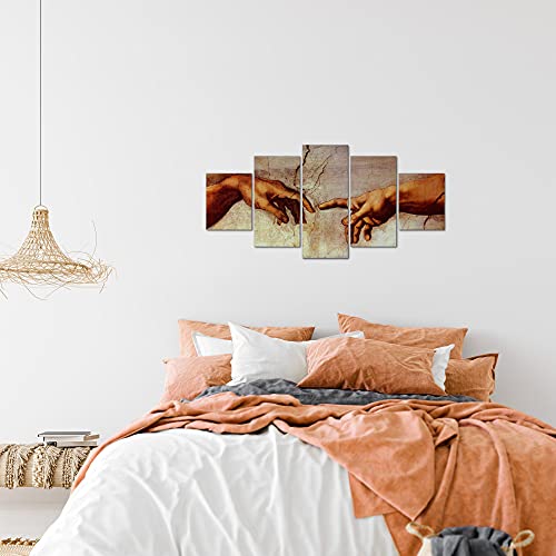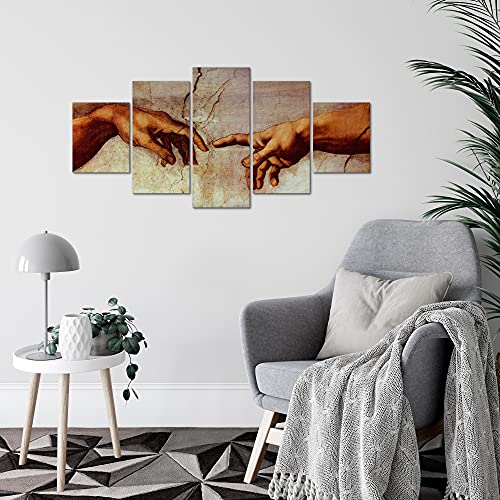 Runa Art Murali Da Parete Creazione Di Adamo Michelangelo 5 Pezzi Quadro Tela Non Tessuta Decorazione Soggiorno Mani Creazione Di Adamo 700152a