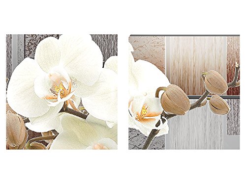 Runa Art Orchidea Fiori Quadri Moderni - Made In Germany - Murali Astratto Grigio Beige 4 Pezzi 204642a