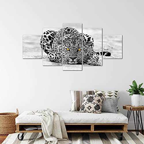 Runa Art - Quadri Africa Leopardo 200 x 100 cm 5 Pezzi XXL Decorazione Murale Design Grigio Giallo 000351a