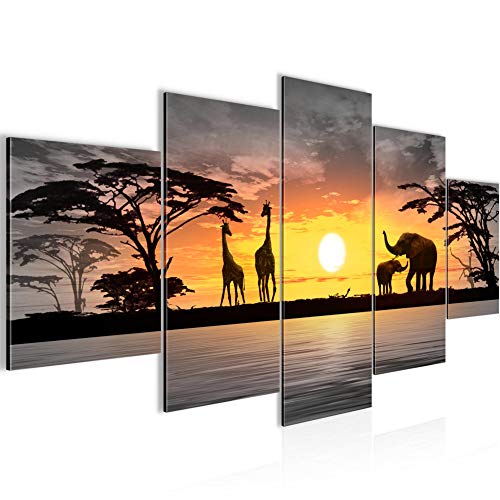 Runa Art - Quadri Africa Tramonto 200 x 100 cm 5 Pezzi XXL Decorazione Murale Design Arancia 000251c