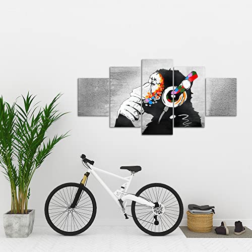Runa Art - Quadri Banksy scimmia Dj Monkey 200 x 100 cm 5 Pezzi XXL Decorazione Murale Design Colorato 042551a