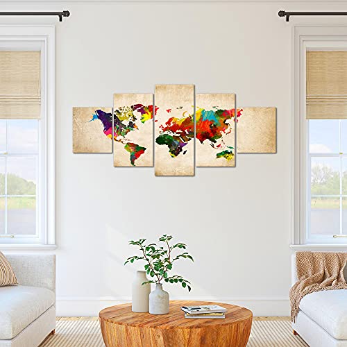 Runa Art - Quadri Mappa Del Mondo 200 x 100 cm 5 Pezzi XXL Decorazione Murale Design Colorato 105151a